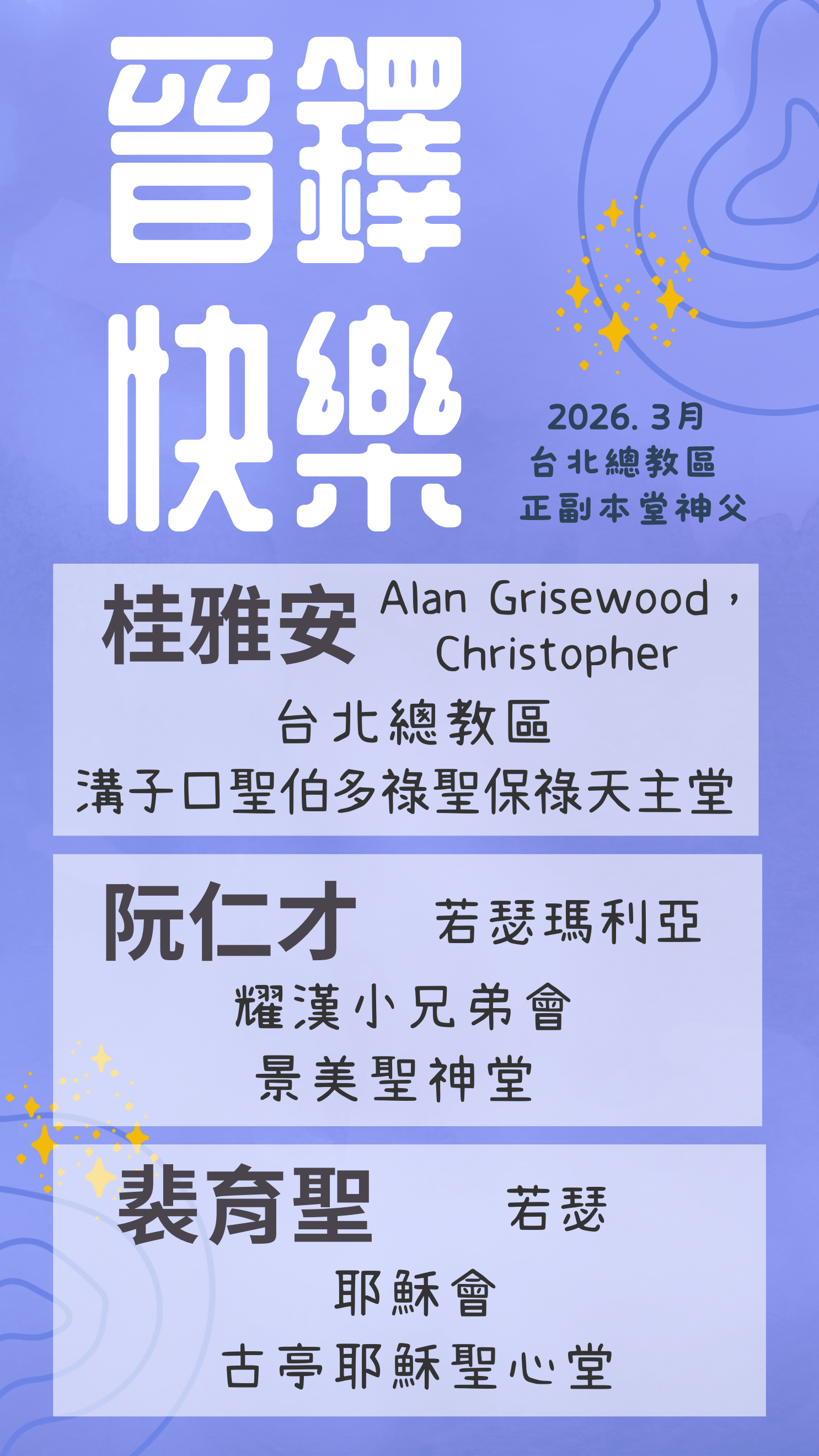 為我們敬愛的神職人員祈禱~3月份 2026-03-01