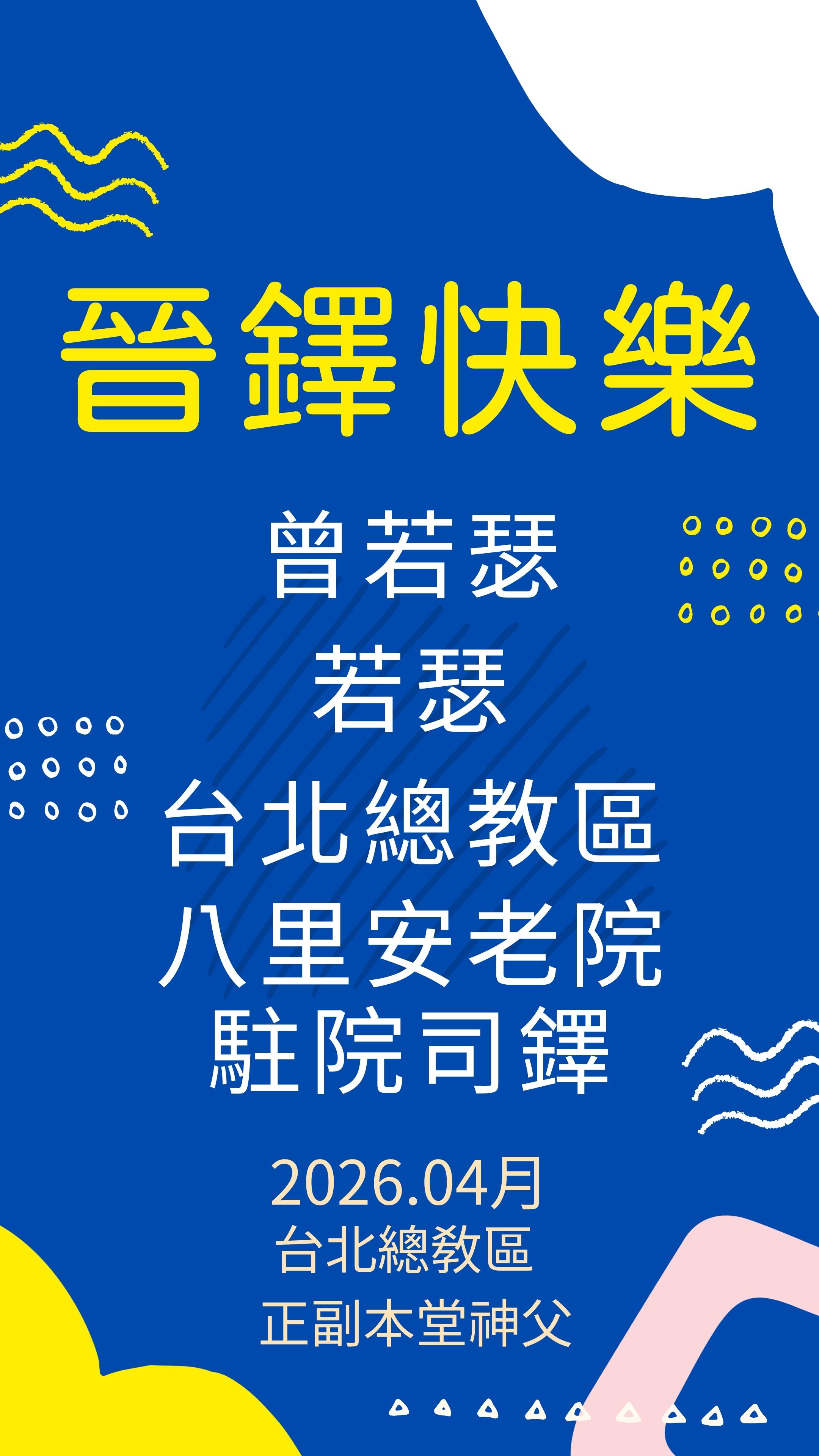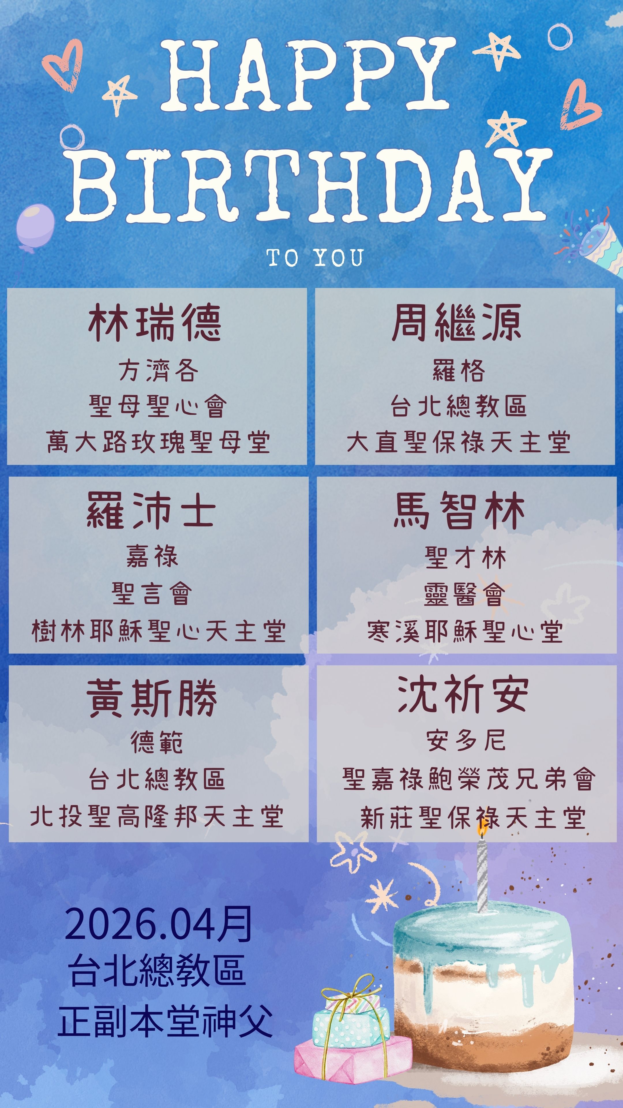 為我們敬愛的神職人員祈禱~4月份 2026-04-01