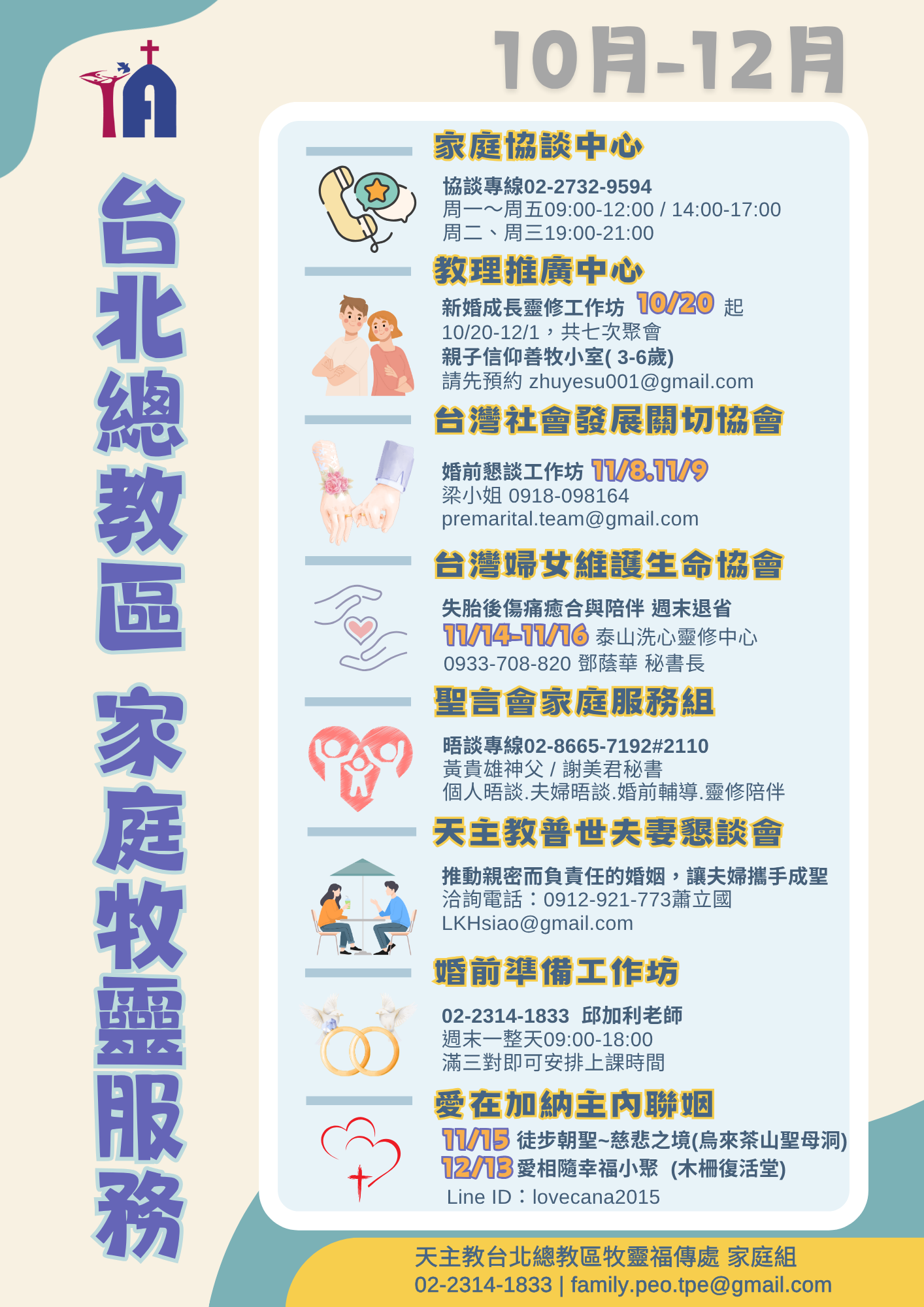 2025年10-12月台北總教區家庭牧靈服務 2025-10-09